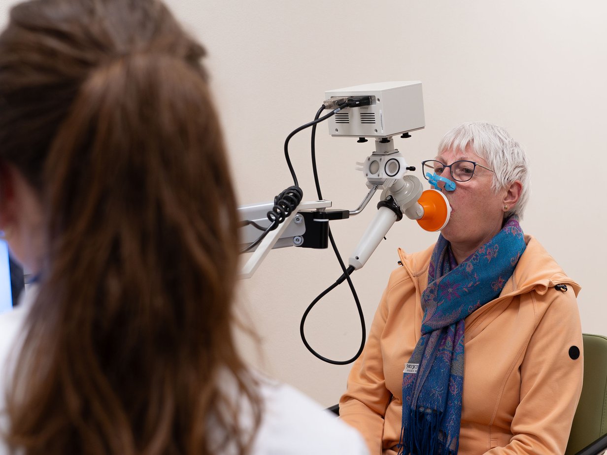 Longfunctieonderzoek waarbij we kijken hoeveel longinhoud u heeft en hoe snel u kunt in- en uitademen.